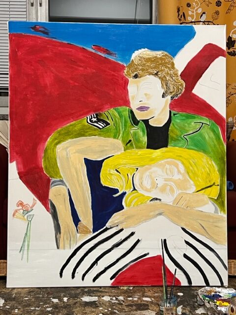 „Diana my love and many things around her“; oil, pencil on canvas; 0,70X1,00m; 2025